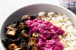 Coriander Tofu with Beet Tzatziki