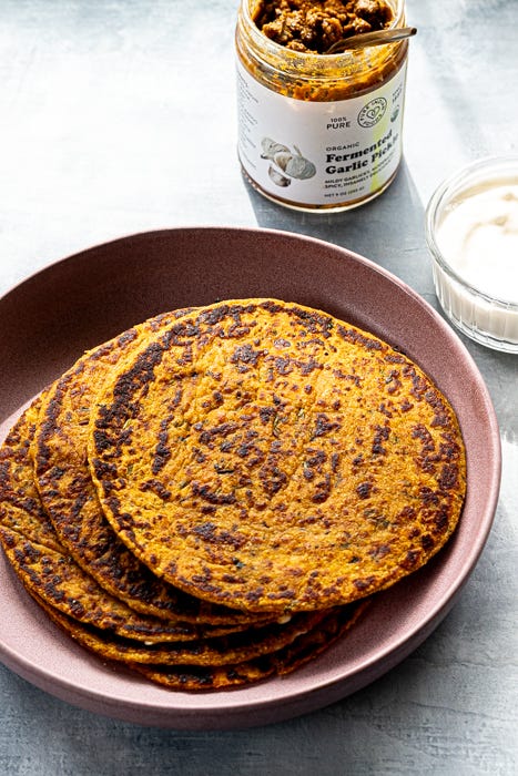Oats, Peas and Paneer Poha - Poha has always been comfort food for me, and this version takes it up a notch in both protein and flavor. Instead of flattened rice, the base is lightly toasted oats, which bring nuttiness and extra fiber. Add in sweet peas (a complete protein when paired with the oats), grated paneer, crunchy peanuts, coconut, and curry leaves, and you’ve got a dish that’s as nourishing as it is satisfying. Best of all? It comes together in under 30 minutes, making it a weeknight staple in my rotation. And all you savory breakfast people, look no further than this dish.